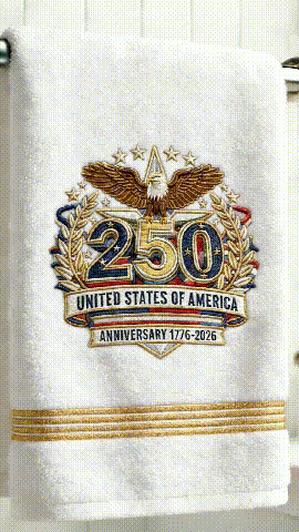 This bold embroidered towel proudly features the “250 United States of America – Anniversary 1776–2026” design, complete with a soaring bald eagle, stars, and laurel wreath details. It adds instant patriotic charm without screaming novelty gift.